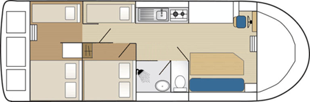 - 2 Kabinen, 1 mit doppelbett und Einzelbett, 1 mit doppelbett.
