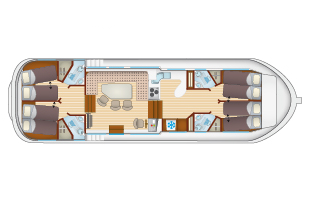 Pénichette ohne Lizenz für 8 bis 12 Personen. Die Pénichette Premium 8-12 Pers bietet Platz für Ihre Familie oder eine Gruppe von Freunden.