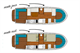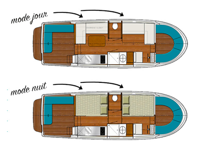 Pénichette ohne Lizenz für 2 bis 4 Personen. Die Pénichette 950E bietet Platz für 2 Paare oder eine kleine Familie.
