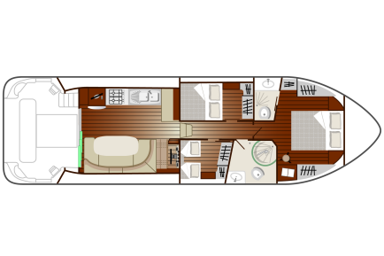Imbarcati sulla barca Cruiser Premium 6-8 Pers per una crociera sui canali della Francia. Ha 3 cabine e un bel soggiorno.